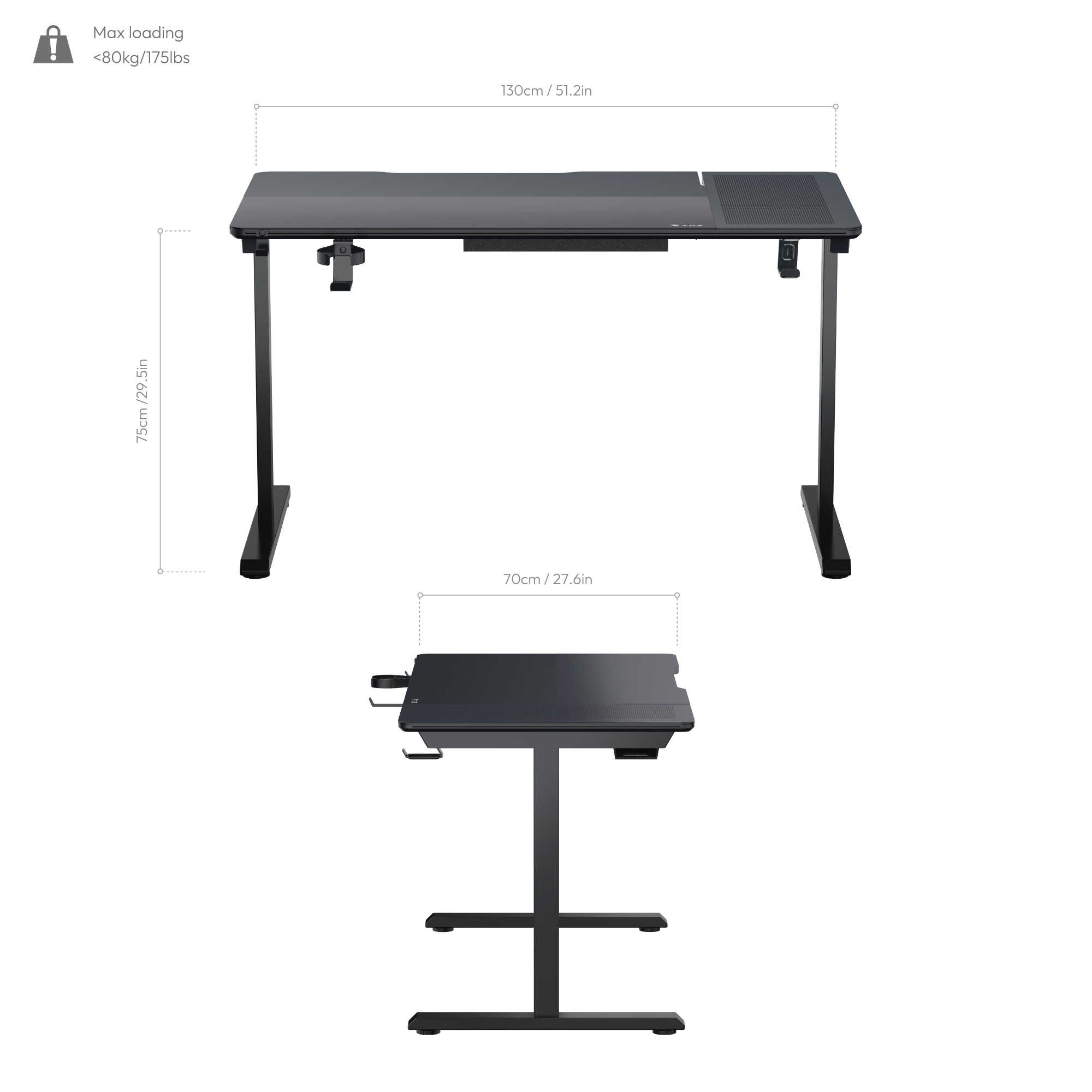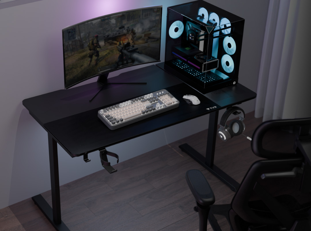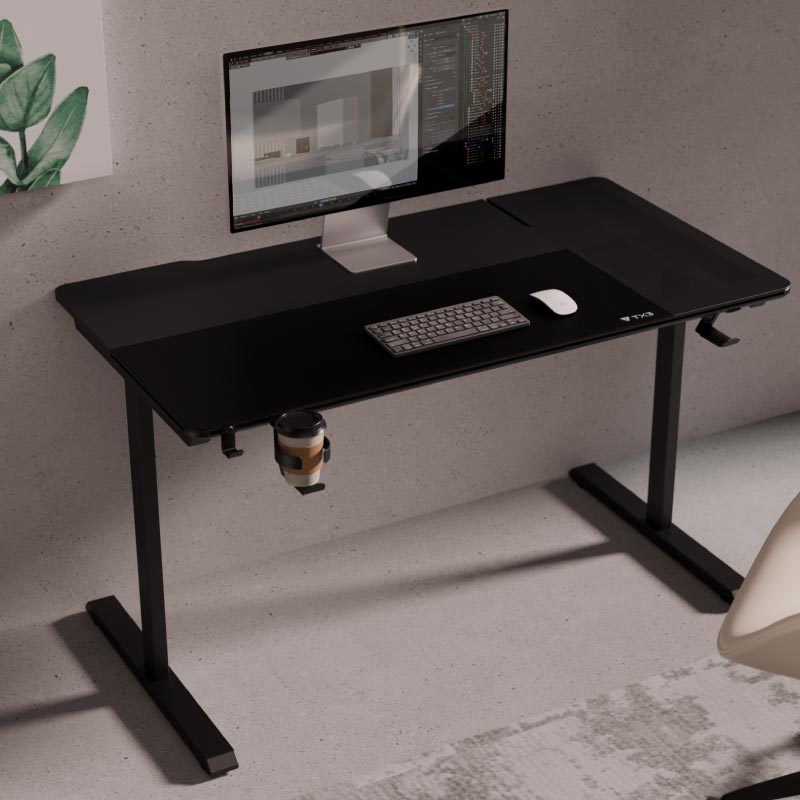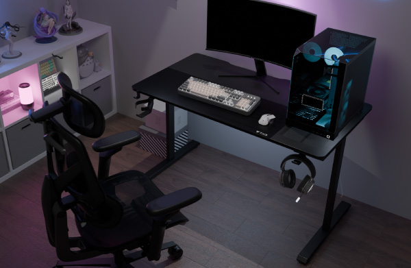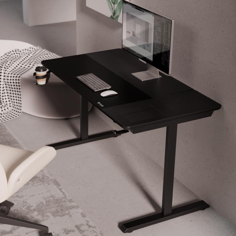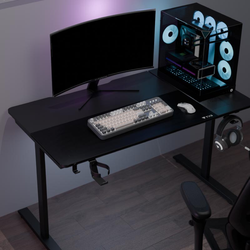The LAB-X Lite Gaming Desk delivers a compact, ergonomic workspace with a sleek tempered glass mousepad surface and mesh side plates to boost PC airflow. Its aluminum frame includes a full DIY track system for easy customization, while the standing desk format promotes better posture and energy. Perfect for creators, gamers, and professionals, the LAB-X Lite offers maximum value in a minimal footprint.