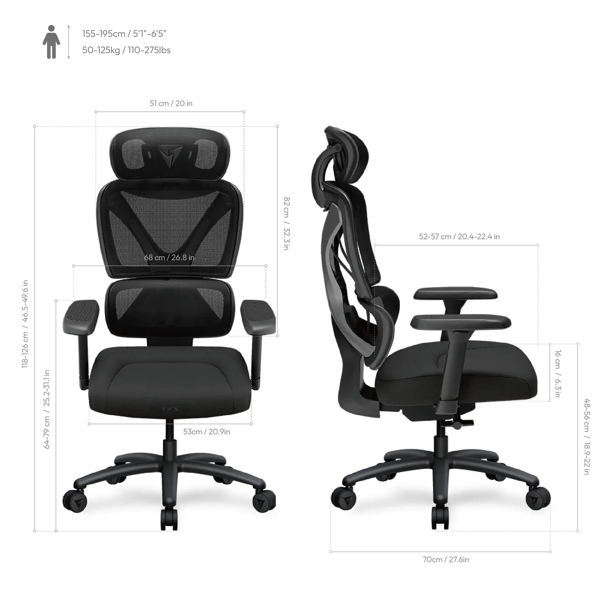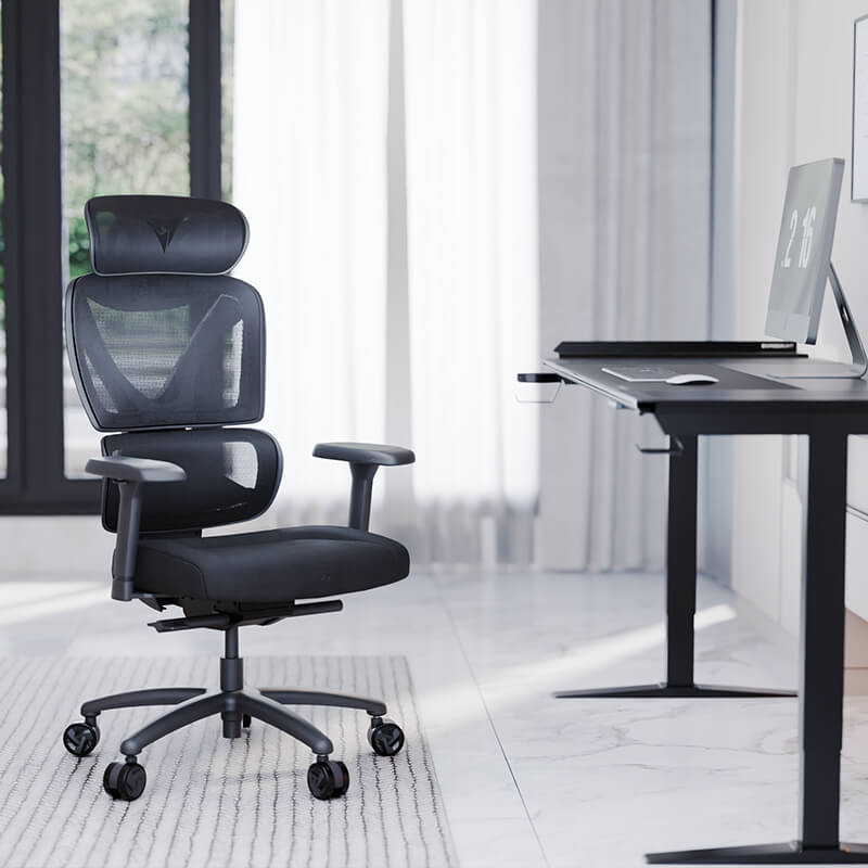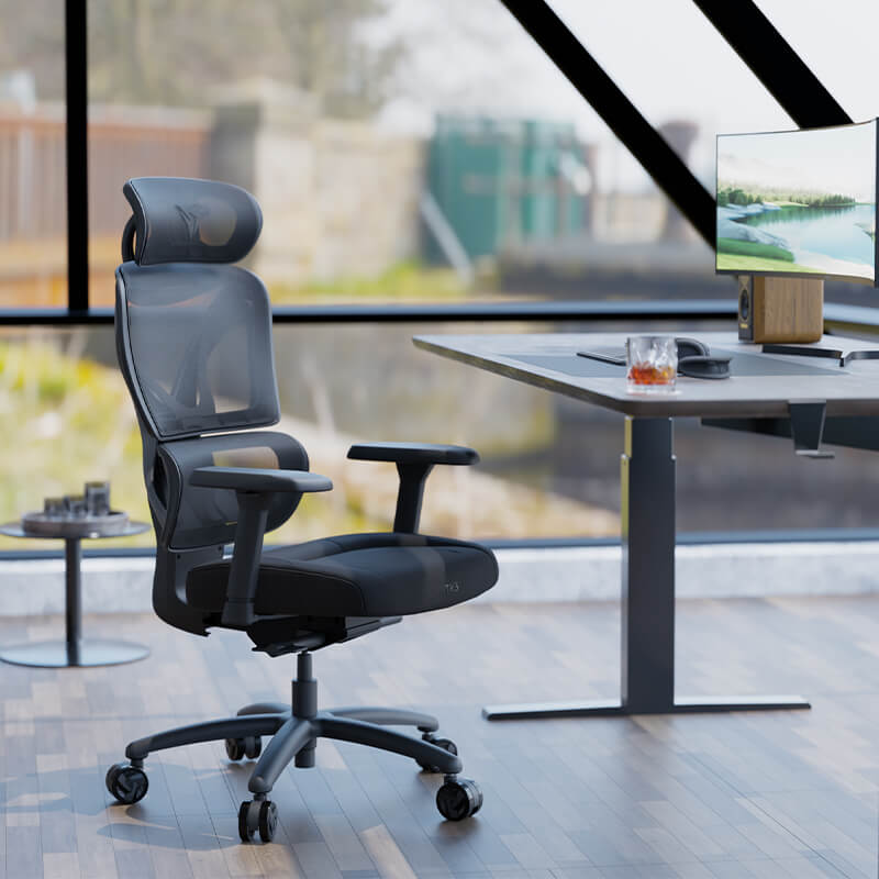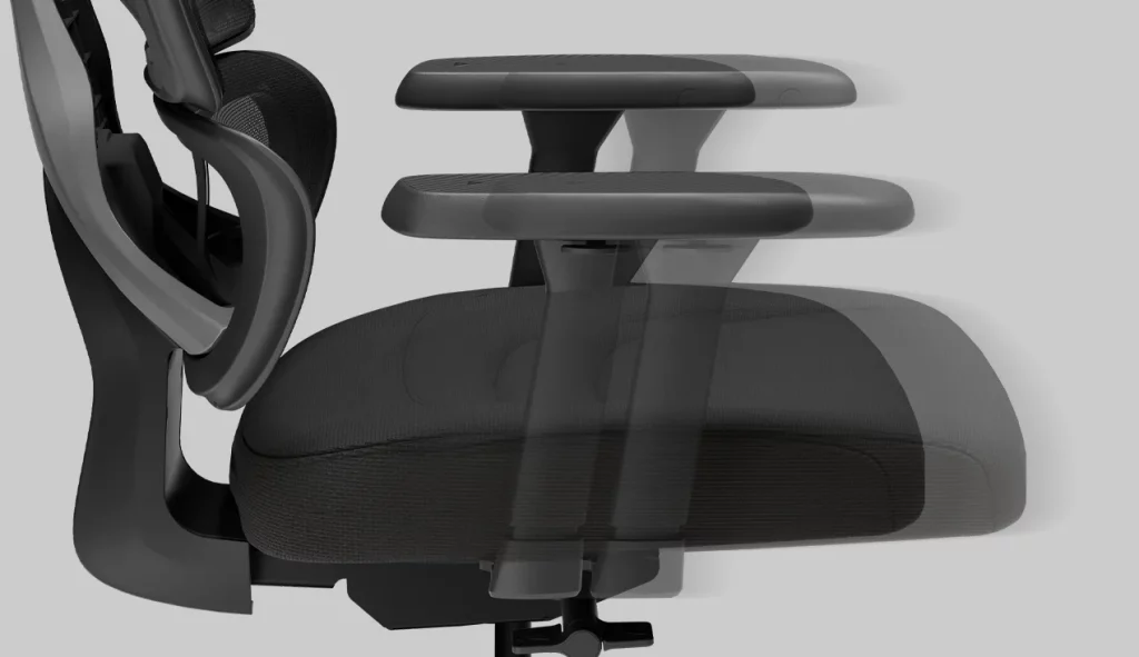 • 2D adjustable headrest and 3D adjustable armrests that provide full-body support.